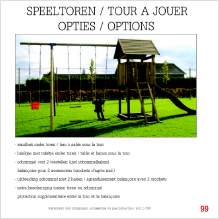 - Speeltoren incl PVC-glijbaan (rood, blauw, groen of geel) & trapje, bevestigingsmaterialen en plan.